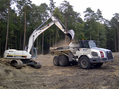 Posiadamy własne koparki, ładowarki, koparko-ładowarki, kruszarkę, przesiewarkę, wielozadaniowe teleskopowe nośniki osprzętu, wozidła technologiczne, równiarkę, walec, zagęszczarki oraz tabor samochodów ciężarowych, w tym wywrotki od 8 – 25t, hakowce oraz zestaw niskopodwoziowy.